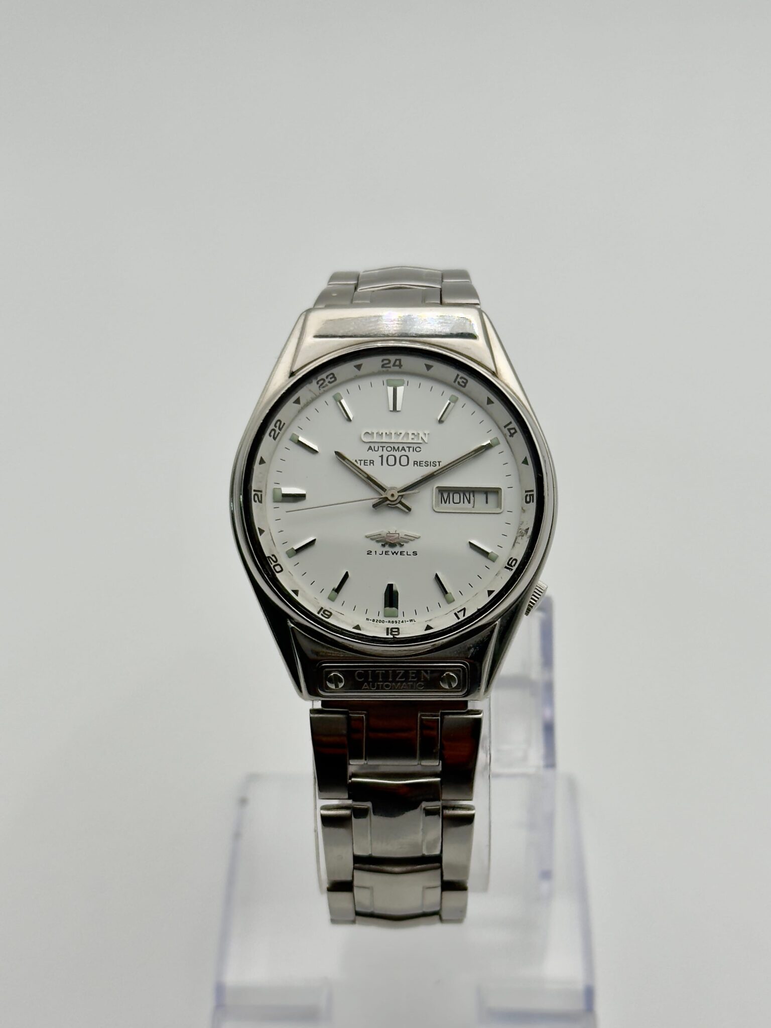CITIZEN Watch Co, reloj AUTOMÁTICO, calibre CITIZEN 8200, reloj para hombre, esfera limpia, CITIZEN vintage, fabricado en Japón, 21 rubíes, día y fecha.
