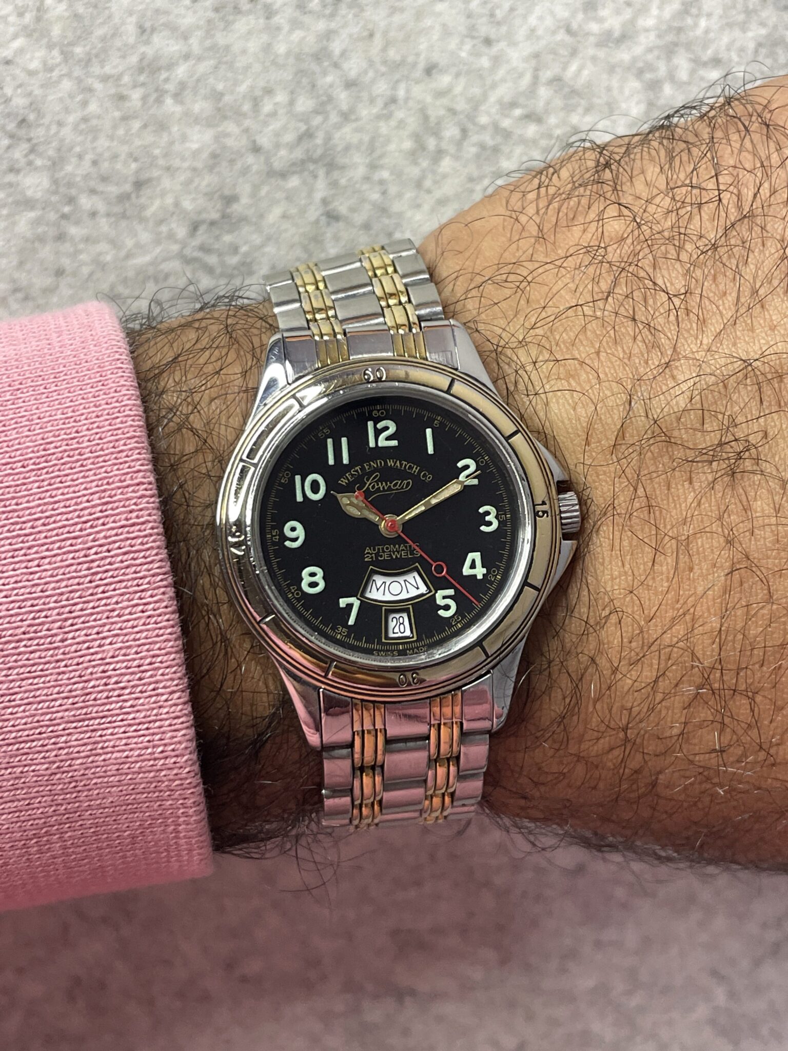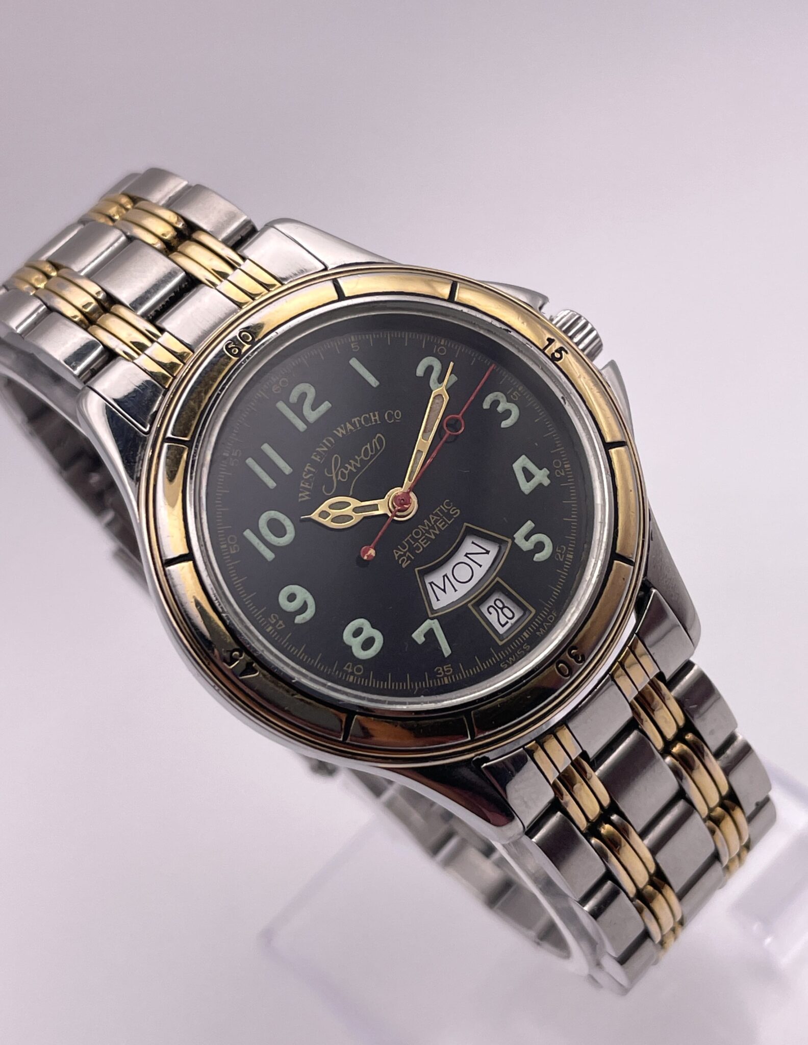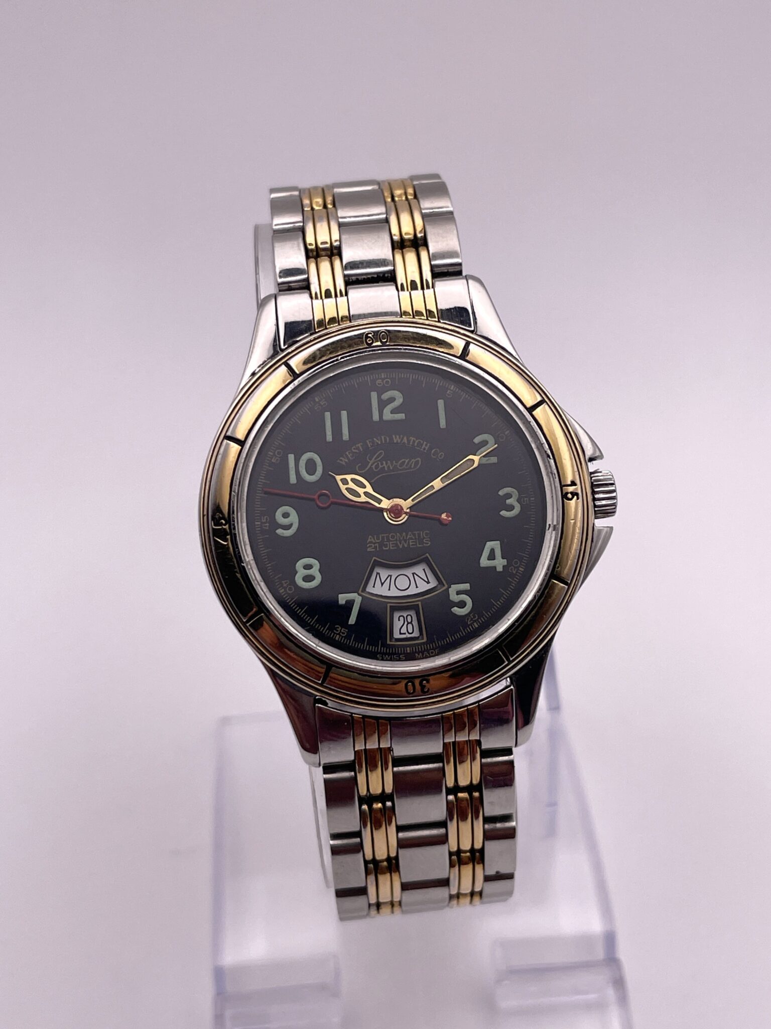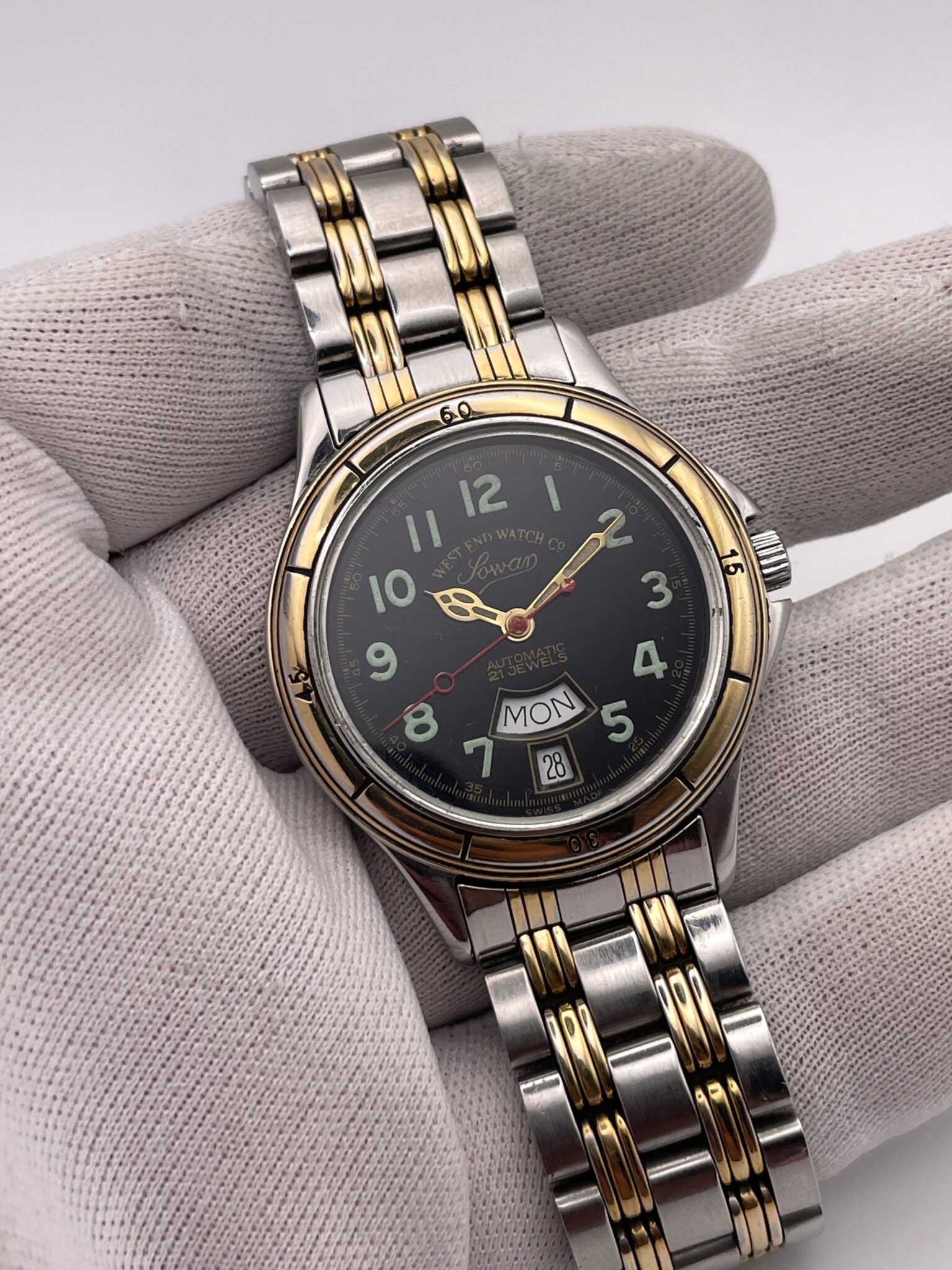 WEST END Watch co, Sowar, Caliber Eta 2834-2 , 25 Jewels, Automatic Men Watch, Clean Dial, Vintage WATCH, Swiss Made, Day and Date.